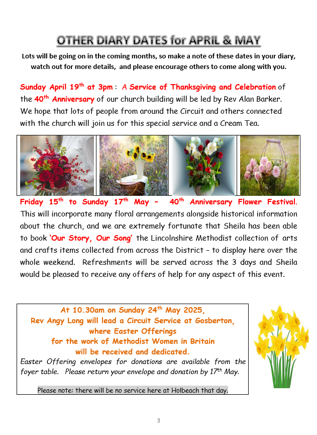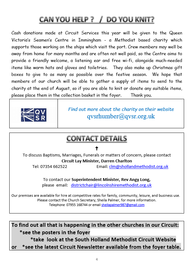 Minister: Rev. Angy Long – districtchair@lincolnshiremethodist.org.uk