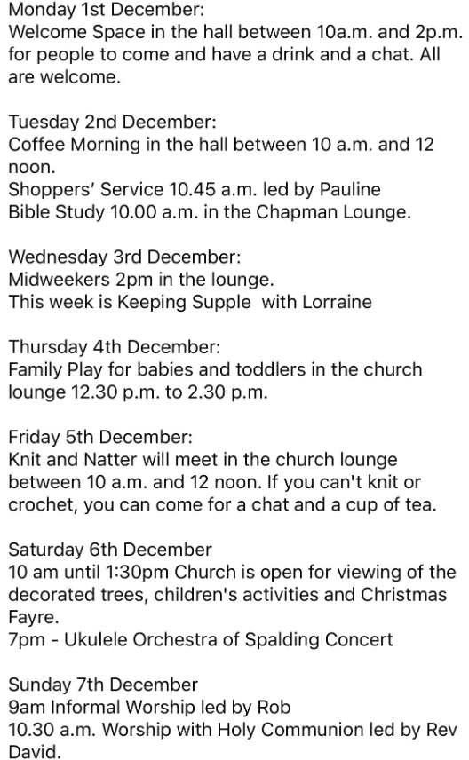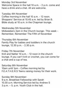 Every Sunday: 9.00am Informal Worship and children’s activities