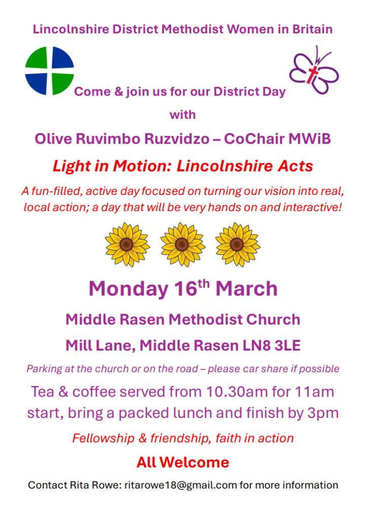 Sunday 19th April – Holbeach: 40th Anniversary Service led by Rev Alan Barker followed by refreshments 3pm
